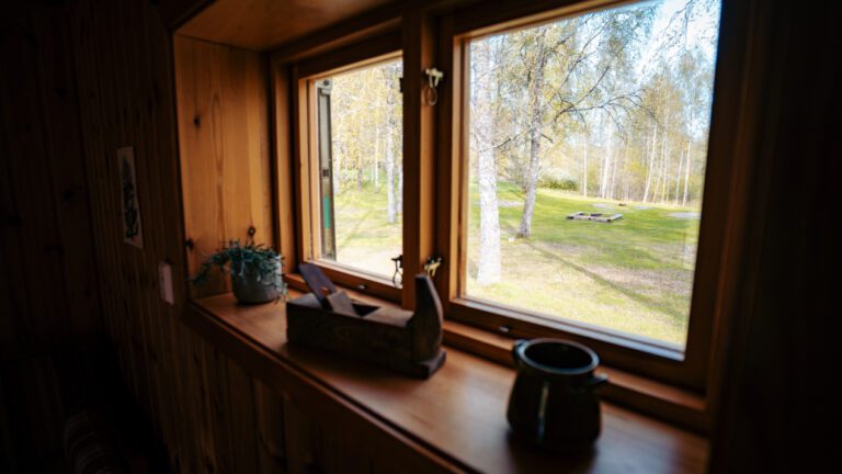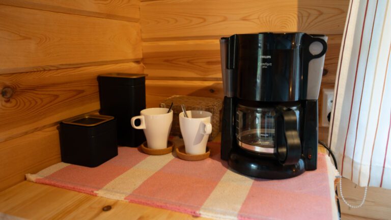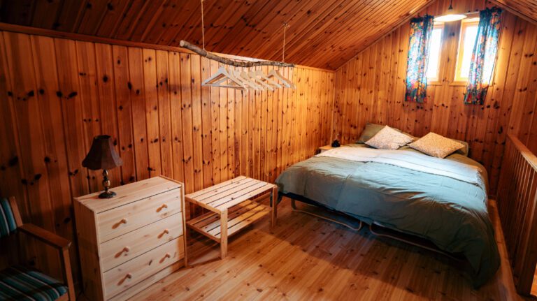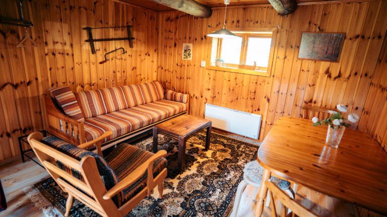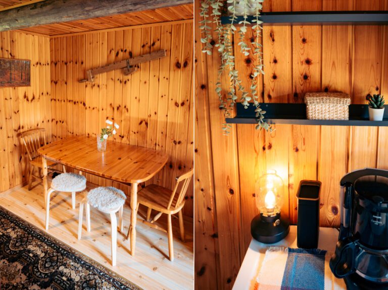 • Our lumberjack hut offers a solid wooden structure with a functional interior, creating a warm and grounded place to rest.