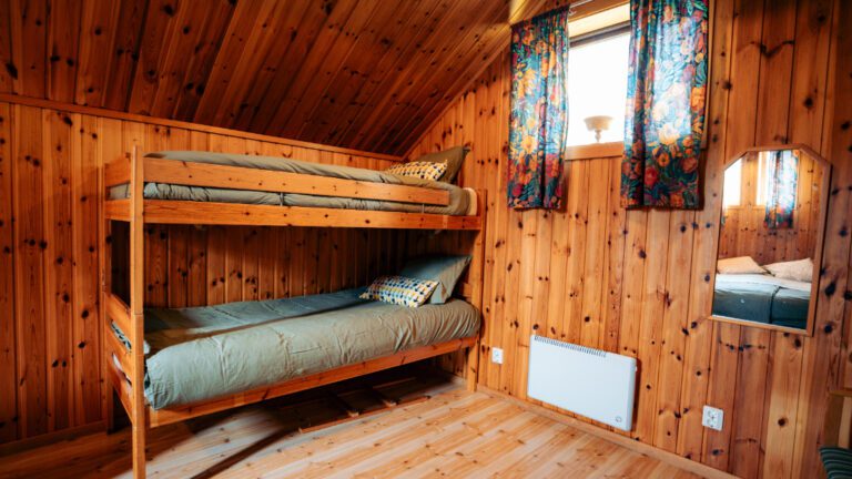 • Upstairs you will find two comfortable single beds and a bunk bed.